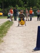 По всему стадиону расположились детские и спортивные центры, приглашающие детей проявить свои умения и способности. Это и конкурс рисунков на стендах и эстафеты от Спортивного клуба СВ-Фитнес, это и конкурс рисунков на асфальте от ТЦ «Бэби-Град», и игры в боулинг с призами-сертификатами на игру в боулинг-клуб «АмбарЪ», и фитбол на мячах, организованный Детским центром «Радуга».